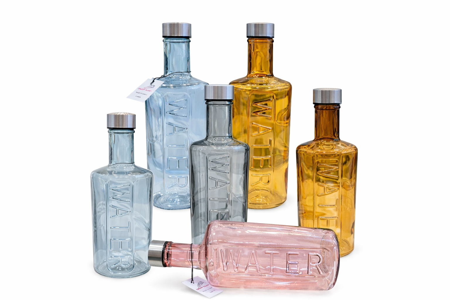 زجاجة مياه زجاج WATER بغطاء ستانلس – 1 لتر