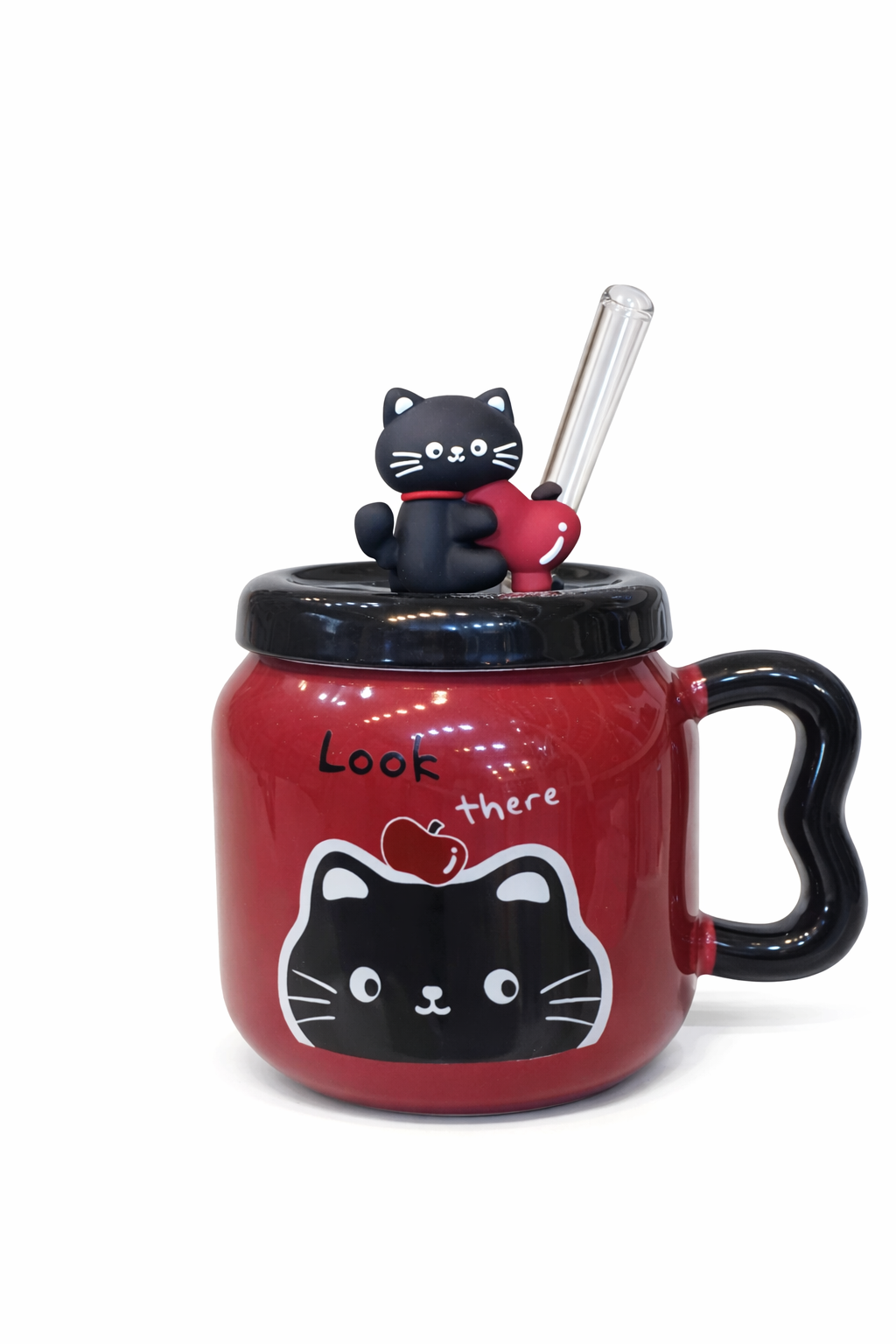 مج شاي بورسلين بلاك كات – بغطاء ومعلقة | تصميم كيوت مناسب للهدايا