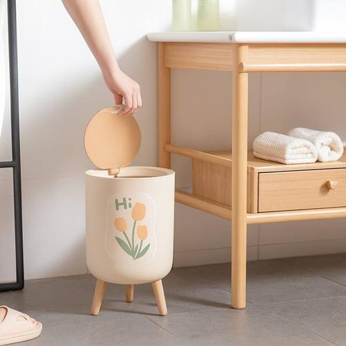 - سلة المهملات مصنوعة من مادة بلاستيكية عالية الجودة وأرجل خشبية متينة صغيرة وسهلة الحمل. يمكن أن يمنع التصميم المزود بغطاء الحيوانات الأليفة من البحث عنها والأطفال من لمس القمامة.