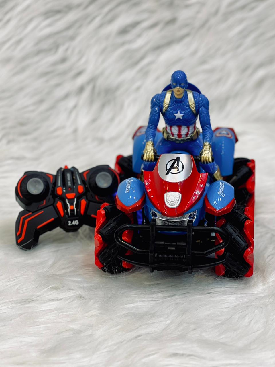 - المركبة: هي مركبة رباعية الدفع (ATV) بلوني كابتن أمريكا المميزين، الأحمر والأزرق، مع نجمة بيضاء وشعار "A" على المقدمة.