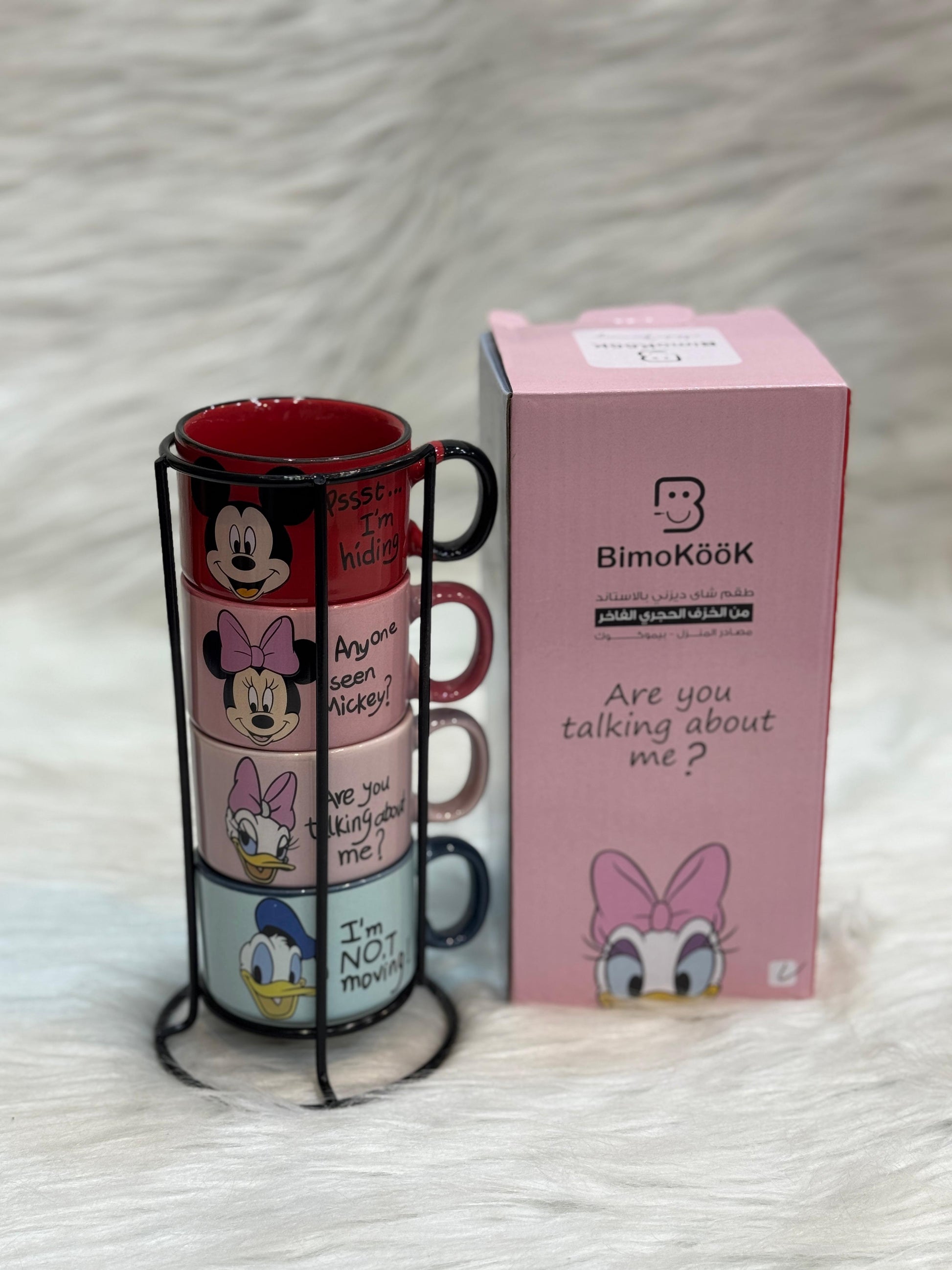طقم فناجين قهوة بورسلين ديزني عدد ٤ قطع علي ستاند معدن