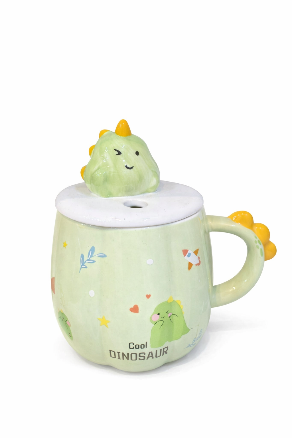 مج شاي بورسلين دينو كيوت – بغطاء ومعلقة | تصميم كرتوني مناسب للهدايا