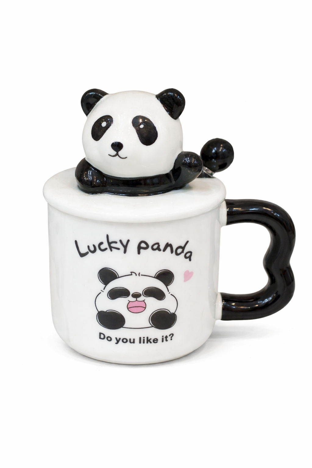 مج شاي بورسلين لاكي باندا – بغطاء | تصميم كيوت مناسب للهدايا