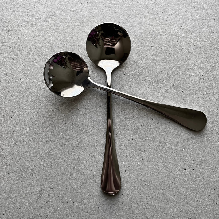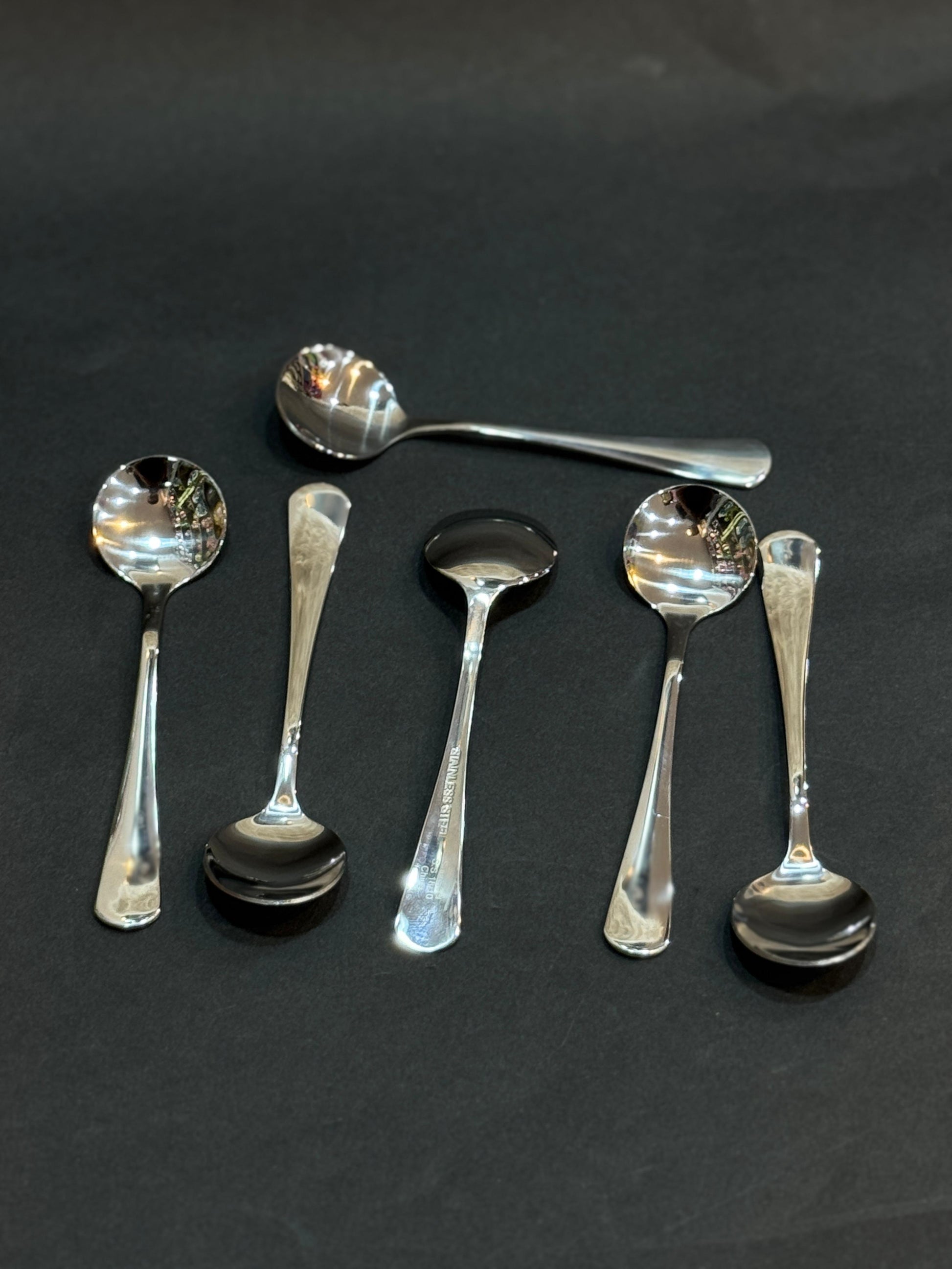 ملعقة تقديم 6 قطع سميكة طويلة من الفولاذ المقاوم للصدأ مستديرة