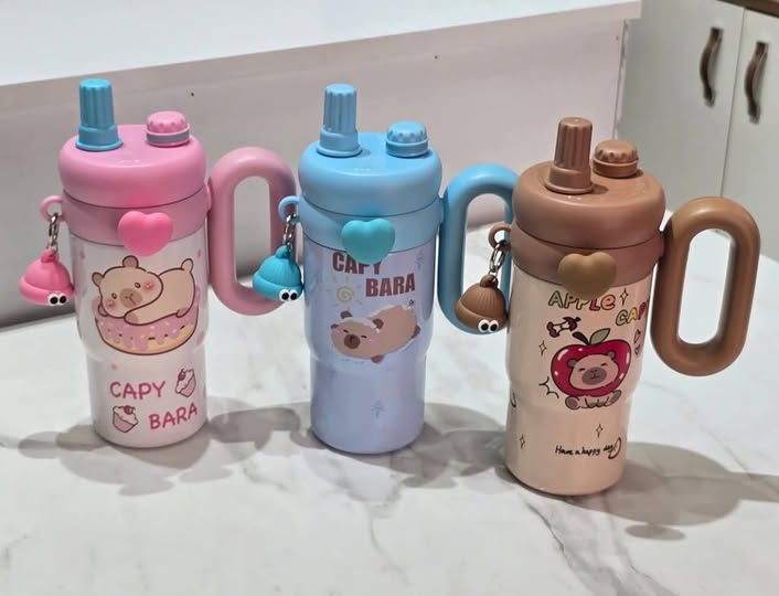زجاجة مياه للأطفال بيد وشفاط – تصميم كرتوني لطيف